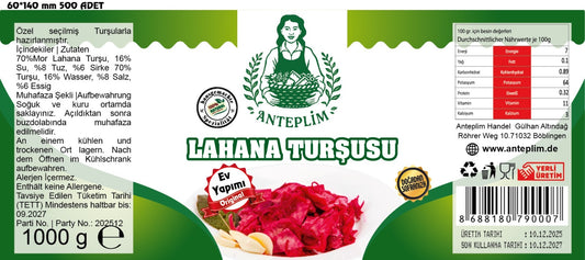 Hausgemachter Eingelegter Rotkohl (Mor Lahana Turşusu) 1 kg im Glas – 100 % Natürlich & Authentisch | Anteplim