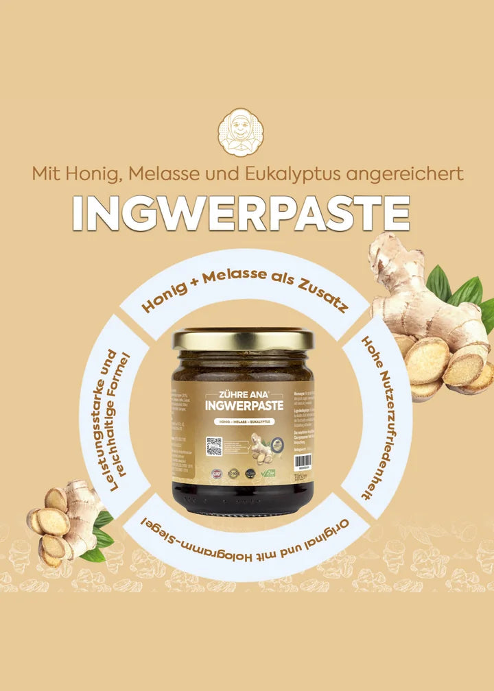 Zühre Ana Ingwerpaste ist eine geschmacksintensive Spezialität, die sich ideal für den täglichen Gebrauch eignet. Mit 30 % frischem Ingwer verleiht sie Speisen und Getränken eine aromatische Würze und unterstützt gleichzeitig das Immunsystem auf natürliche Weise.