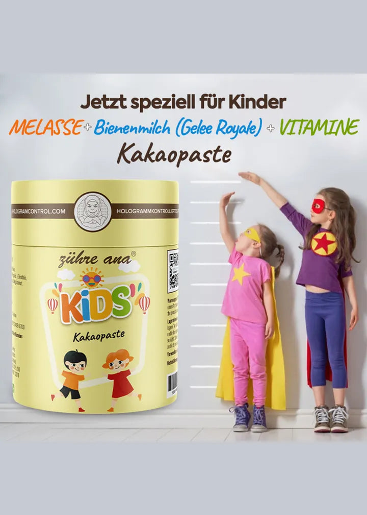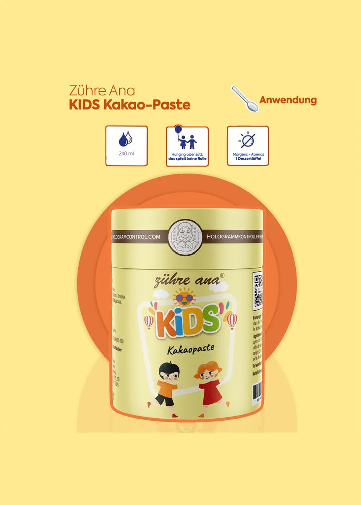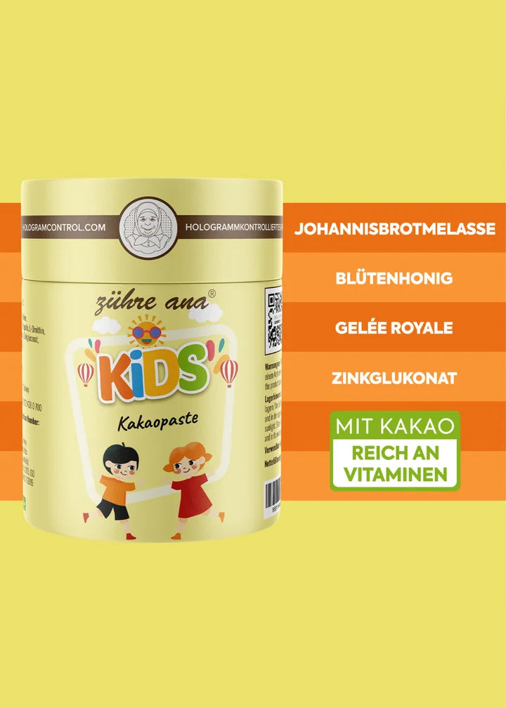 Die Zühre Ana Kids Kakao Paste wurde speziell entwickelt, um den Süßigkeitsbedarf von Kindern auf eine gesündere Art zu decken. Mit intensivem Kakaogeschmack und wertvollen Inhaltsstoffen wie Blütenhonig, Gelée Royale, Propolis und Vitamin C ist sie eine köstliche und zugleich nahrhafte Wahl.
