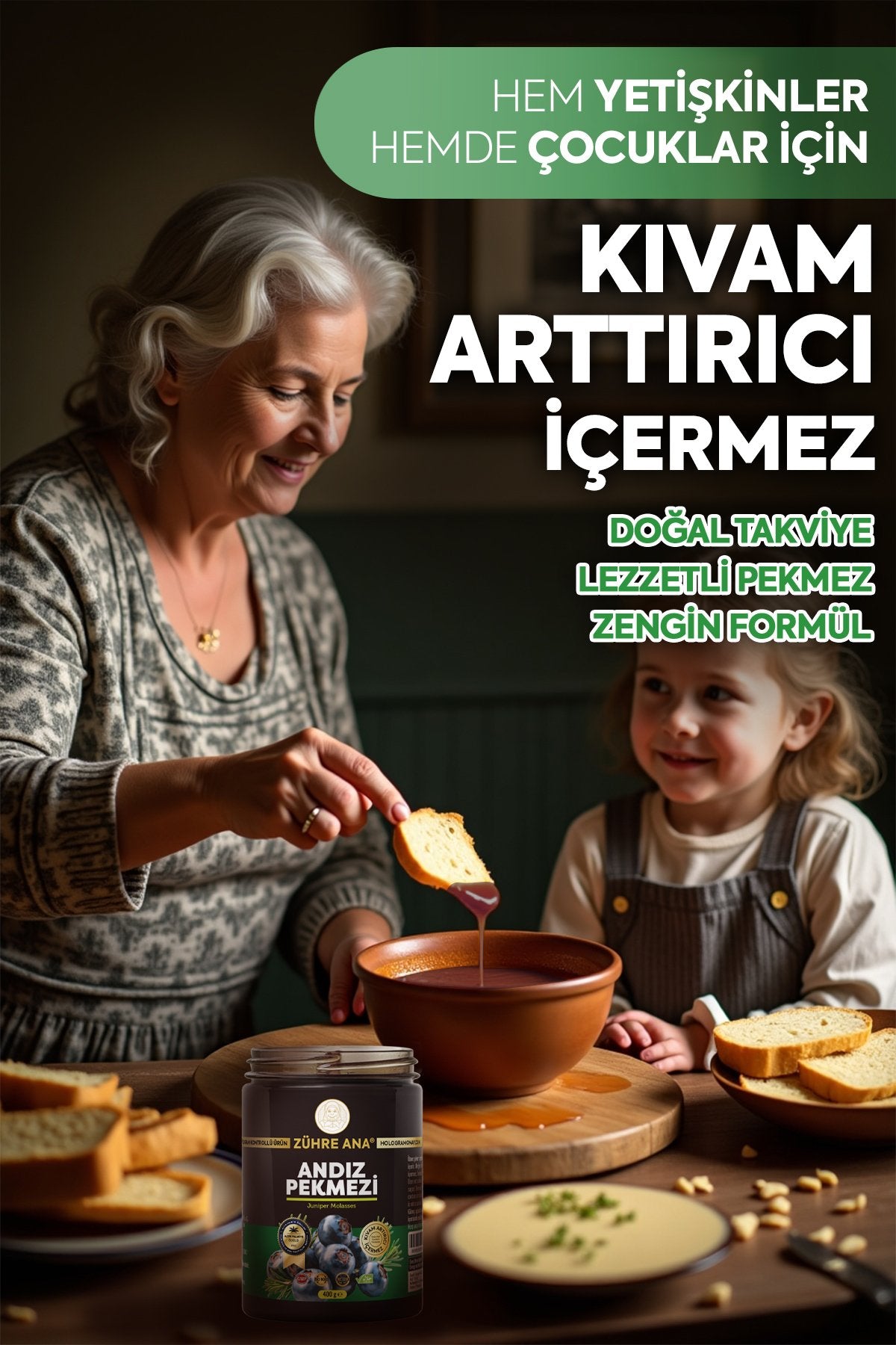 Zühre Ana Andız Pekmezi, reçine çamı kozalaklarından geleneksel yöntemlerle elde edilen, katkı maddesi ve koruyucu içermeyen doğal bir üründür. Yoğun aroması ve karakteristik tadıyla kahvaltılardan tatlılara kadar pek çok tarifte doğal tatlandırıcı olarak kullanılabilir.